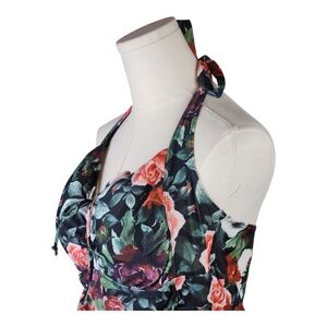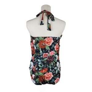 Floral Halter One Piece Swimsuit XL Ruched Keyhole Retro Rose Print Bathing Suit