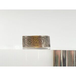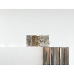 Floral Hand Carved Cigar Banded Shank 925 Sterling Silver Vintage Ring - sz 9