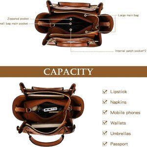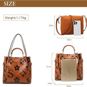 Large Capacity & Practical Size Women's Shoulder Handbags : This satchel bag measures 13" x 6.3" x 12.2", with a detachable inner pouch measuring 11" x 3.7" x 7.9. It features a main compartment and an interior small pouch . This large bucket bags for women has enough space to hold your iPad, iPhone, water bottle, A5 notebook, wallet, makeup, compact umbrella, keys and other essential items.
