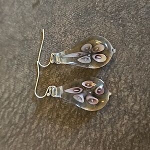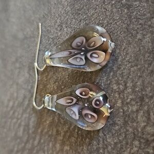 Floral Handblown Glass Teardrop Dangle Hook Earrings