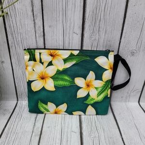 Chic and vibrant, this floral green wristlet bag is perfect for any occasion. Its stylish design and convenient size make it a must-have accessory