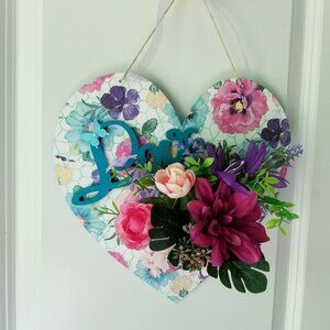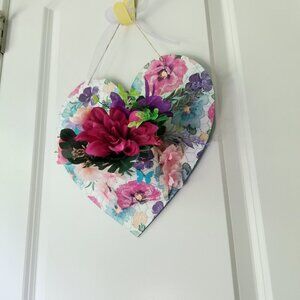 Made with "love" this pretty purple, pink and blue accents handcrafted heart-shaped 💜wall or door decor