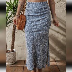 Floral High Waist Skirt with Side Split