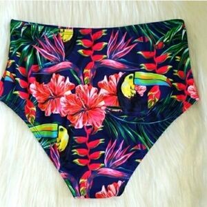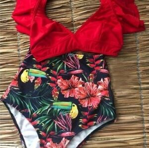 Floral High Waisted Ruffle Hem Bikini Set Swimsuit Size L