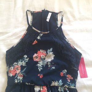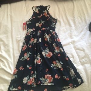 Brand new Women's XS short floral dress. Target brand xhilaration. Perfect condition! Dress is navy with light pink, white, and light blue floral design.