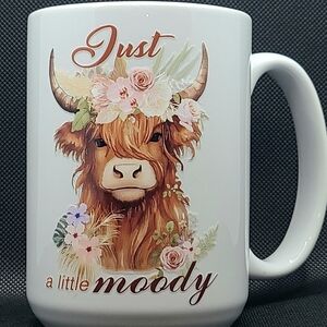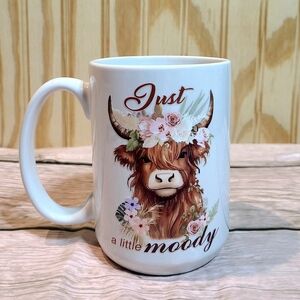 Floral Highland Cow Mug Just A Little Moody - White 15 ounce