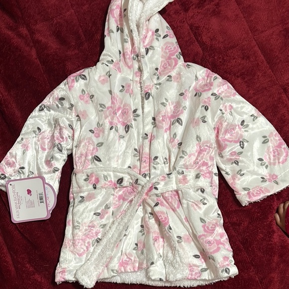 Cozy hooded robe featuring a beautiful pink rose pattern on a white background. Perfect for lounging in style.