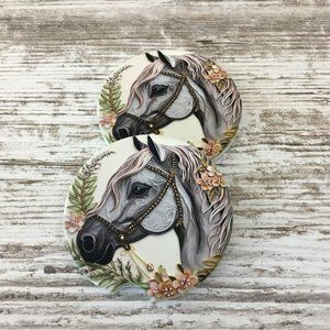 Add a touch of artistic flair to your car's cup holders with these Horse Paper Quilling Art Car Coasters. They make a perfect gift for horse enthusiasts or yourself. Available in a set of 2 sandstone coasters.