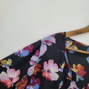 Floral & Ivy Womens 2X Button Front Chiffon Blouse Black Sheer Lightweight Top