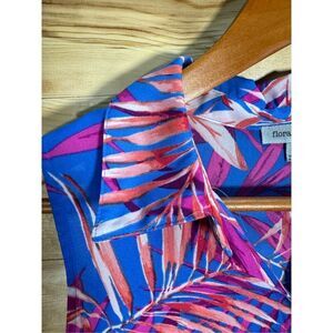 Floral & Ivy Women's Size Medium Blue Tropical Floral Print Sleeveless Button Do