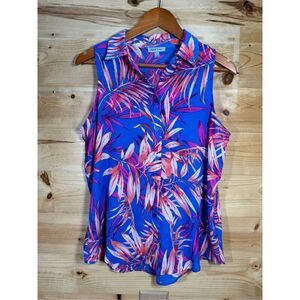 Floral & Ivy Women's Size Medium Blue Tropical Floral Print Sleeveless Button Down Blouse