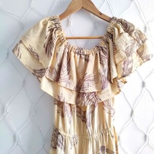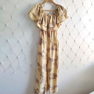 Floral Jumpsuit / Leaf Print / Butter Yellow / Size Small