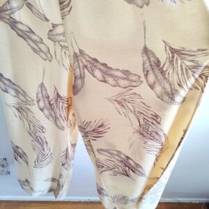 Legs are pretty wide, but not Palazzo. Ruffles at next. Matching belt. Wear shoulders up or down.