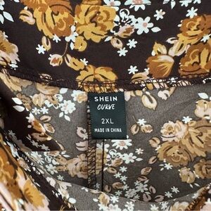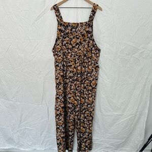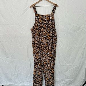 Stylish floral jumpsuit featuring a blend of black and tan colors. Perfect for any occasion.
