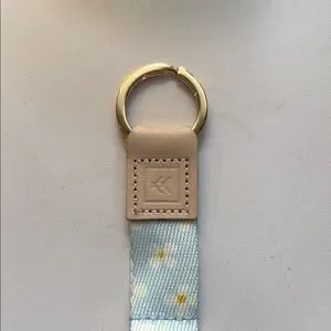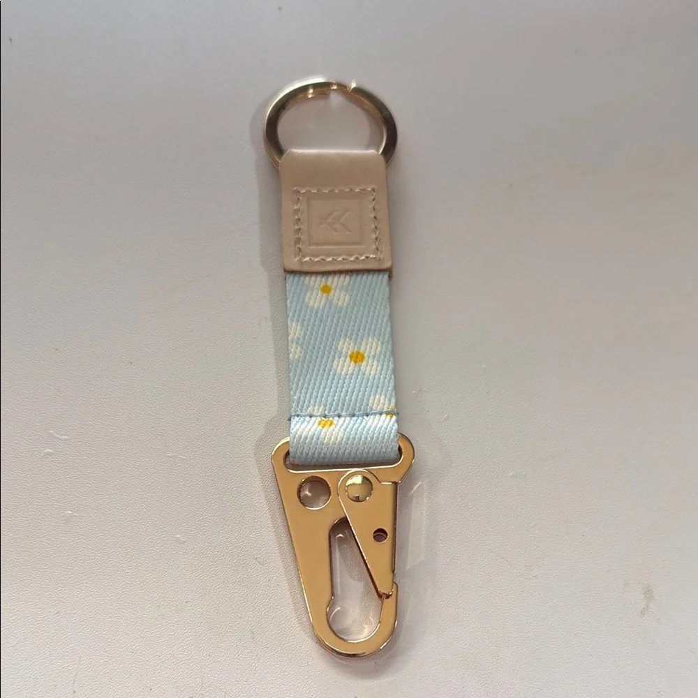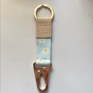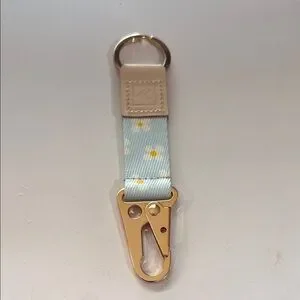 Charming kids' keychain with a floral design. Features a delightful blue and gold color scheme. Perfect for adding a touch of fun to any bag or backpack. Like new condition