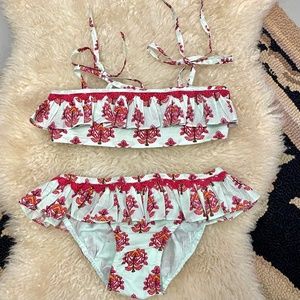 Adorable kids bikini set featuring a vibrant floral design. Perfect for fun days at the beach or pool. Size 8 bottom and 10 top.