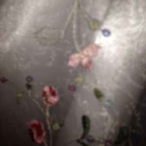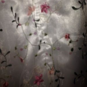 This dress is super soft, pretty, floral and would look great for a formal occasion! There are some MINOR frays on the embroidered flowers that aren't even noticeable from 6in away. So so cute, especially with the pink flower bow around the waist!