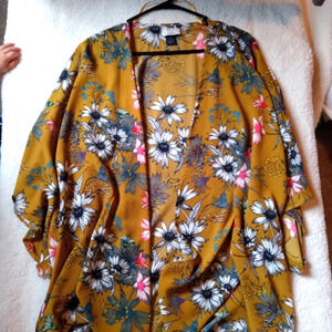 Floral Kimino Cover Up One Size Floral Print Yellow White David & Young