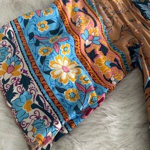 Elegant floral kimono robe featuring a blend of vibrant colors. Perfect for lounging in style.