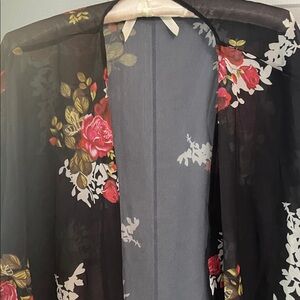 Floral Kimono with Red and White Flowers sheer polyester xl