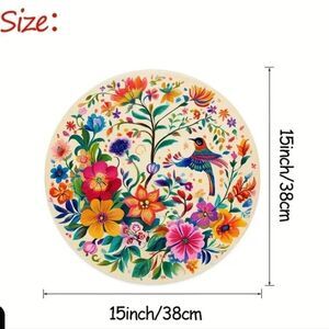 Set of round placemats with vibrant floral designs. Perfect for adding a touch of color to your dining table.