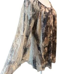 Floral Lace Burnout Top Cream Black Bell Sleeve Witchy Goth Romantic Size 2X