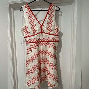 Elegant floral lace dress featuring red accents. Perfect for any occasion. Francesca Dress - Size L - Unworn but no tags