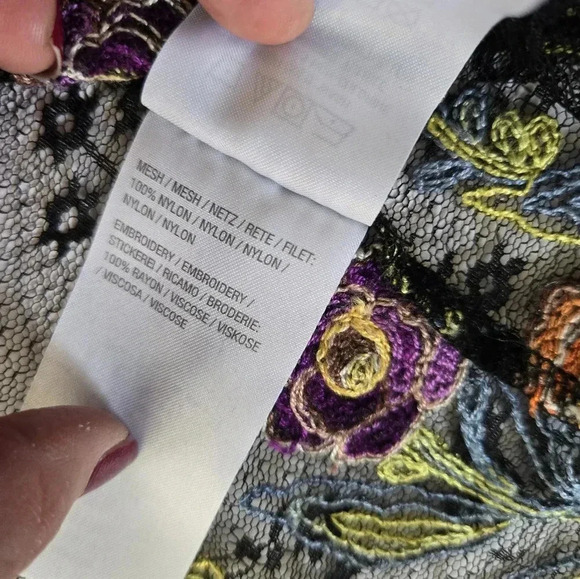 Floral Lace Embroidered Cardigan vest Open Front long line sz M