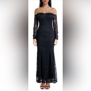Floral Lace Long Sleeve Off Shoulder Mermaid Dress, NWOT