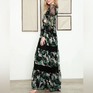 Floral Lace Panel Tiered Maxi Dress Bohemian Cutout Ruffle Sleeve multiple sizes