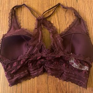 Victoria’s Secret • deep wine wireless racerback bralette with floral detailed lace