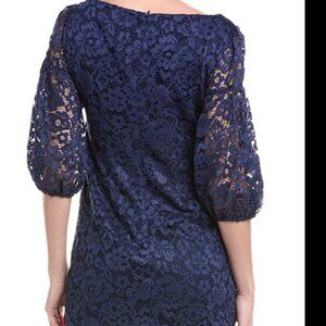 Lace Shift Dress in navy with 3/4-length balloon sleeves