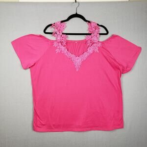 Floral Lace Strap Cold Shoulder Blouse Pink Feminine Coquette Princesscore 5XL