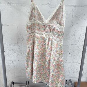 Floral Lace Trim Dress - For Love & Lemons - Size Large - Cute Spaghetti Strap