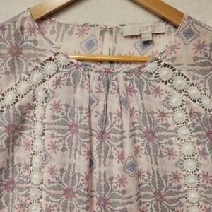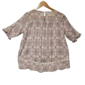 Floral Lace Trimmed Boho Top Beachy Summer Vacation Hippie Lightweight Size XS