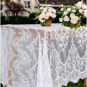 Floral Lace White Tablecloth 60x120" Vintage Look Wedding Shower Rustic Boho NEW