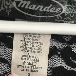 Material: Rayon Spandex *sheer lace back and collar area Care: Hand wash cold