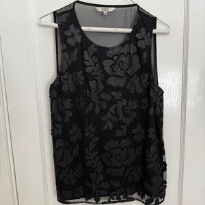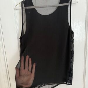 Black tank with cutout faux leather floral pattern in the front. Sheer black back. Great shape, only worn a few times