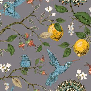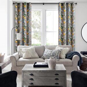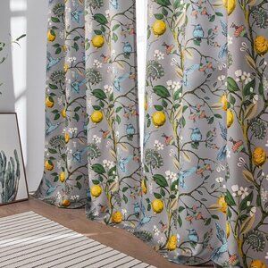 Floral Lemon Hummingbird Curtains Patterned Waverly Mid-Century Style