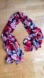 Note: See pic against a black sweater, verifying the deep navy color…it’s a suuuuper dark navy, almost black, just fyi…honestly, it could work with both black AND navy! The red stands out more than anything on this one. 👍 No brand or materials tag but super soft + lightweight; feels like a poly/rayon blend (best guesstimate).