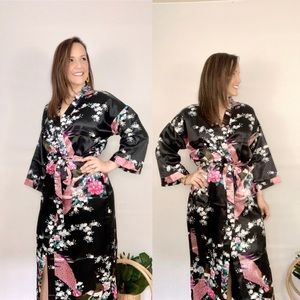 Floral Long Kimono Robes Satin