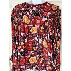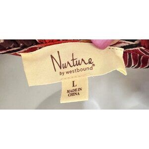Floral Long Sleeve Blouse W Shirred Neckline & Tie Detail By Nurture Large NWT