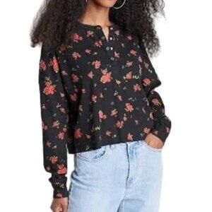 Floral Long Sleeve Cropped Top | Wild Fable | Medium