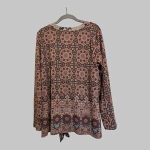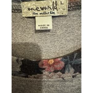 One World Live and Let Live Floral Bohemian Hippie Patchwork Long Sleeve Knit Top Tunic Women’s Size Large