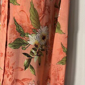 Floral Long Sleeve Sheer Button-Down Shirt Peach & Green Lightweight Boho Top
