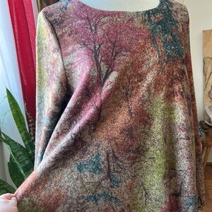 Forest design, long sleeve midi shift dress, XL, pockets, polyester & spandex