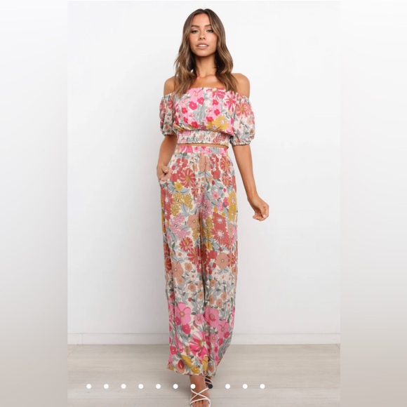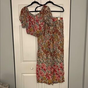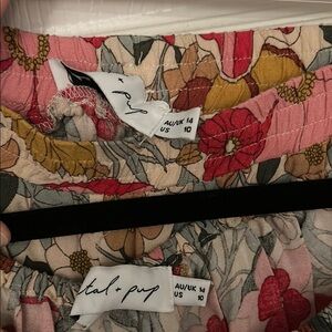 From Petal & Pup. US size 10. Flowy pants and short sleeved top. Pant waist and shirt sleeves/waist are stretchy. Gently worn but still in good condition.