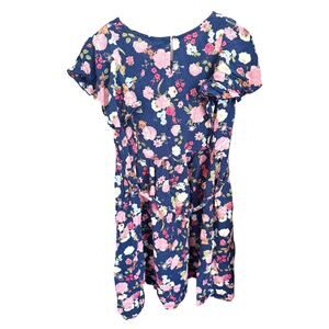 Floral Maternity Dress Blue Pink Roses Puff Sleeve Empire Waist AV2 XXL