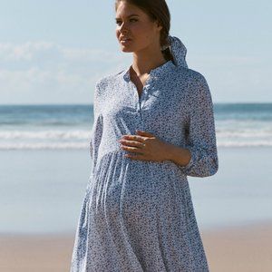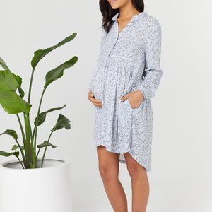 Embrace comfort and style with this beautiful floral maternity dress. Perfect for any occasion, this blue dress offers a relaxed fit and elegant design.