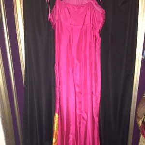 Never worn hot pink with yellow flower satin dress. Adjustable back straps.